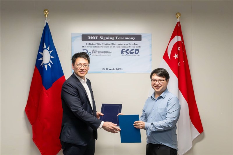 台灣財團法人醫藥工業技術發展中心,與具備先進生物反應器的新加坡益世生命科學集團(ESCO)日前簽署合作備忘錄(MOU),雙方將合作開發先進生物反應器幹細胞生產專利技術,應用於幹細胞先進製程。除技術合作外,ESCO也將協助藥技中心日後整廠技術輸出,與募集東南亞資金。
