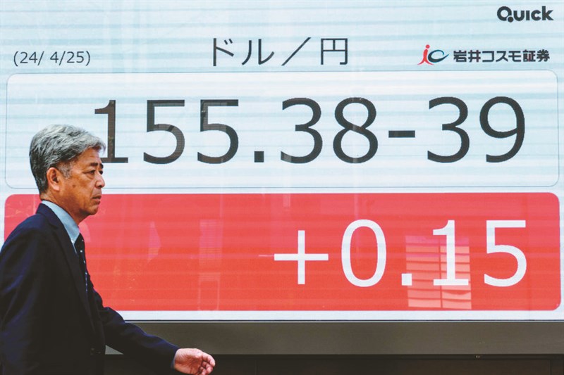 【本報綜合外電報導】日圓貶破155日圓兌1美元價位,是1990年來首見,進一步升高日本當局進場干預的風險。但分析師認為,只要美國通膨頑強、經濟強勁擴張迫使聯準會(Fed)延後降息的展望不改,美元對日圓走強不會改變。