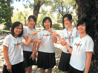 屏東女中一年級的謝宛蓁(中)國中三年內,遭受家庭巨變,大舅、母親與大舅媽,先後相繼因病及車禍死亡。樂觀開朗的她,獨立扛起家中重擔,今年獲得孝行獎。劉星君攝
