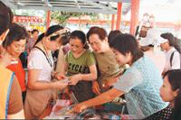 苗栗縣中醫師公會理事長詹永兆也義務為參與民眾義診;主辦單位則準備三百多份精緻點心供民眾享用。