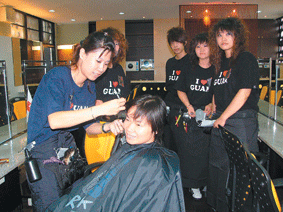 大同高商美髮師團隊昨天由美髮教師李彩鳳、美容教師李玉如等人擔任愛心大使,為社區老婦人、大業國中棒球隊員、社區貧苦民眾免費剪頭髮,免費整理儀容。