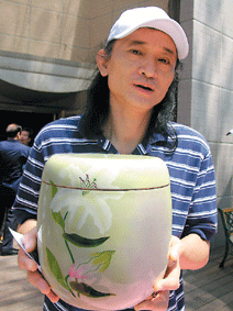 【本報豐原訊】台中監獄更生人張貴章去年同時申請到台灣和大陸專利,首創百分之百防潮的防潮漆藝骨灰甕,改善傳統骨灰甕久會潮濕、骨灰容易發霉缺點。他說此骨灰甕還能量身訂作,兼具人性化和藝術性,讓骨灰甕不再冰冷、刻板。