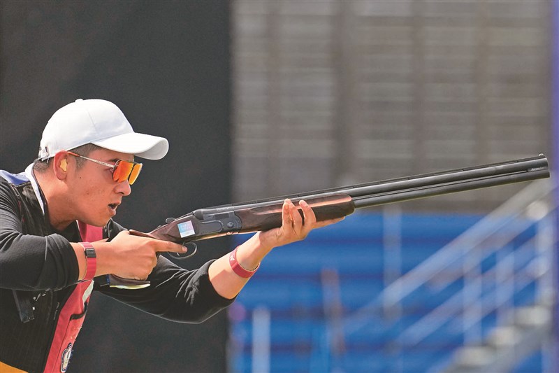 中華隊射擊好手李孟遠,3日在男子定向飛靶決賽摘銅。圖為李孟遠在決賽時專注的畫面。圖/美聯社