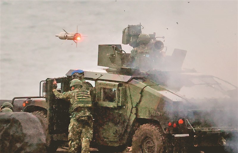 國軍年度反裝甲操演昨天在屏東枋山靶場舉行天馬操演,並首度使用向美軍購的新式拖式2B儎台(M1167型悍馬車款)與M41A7 ITAS發射系統,實彈射擊舊式拖2A飛彈。國防部長顧立雄視導時勉勵參演反裝甲官兵,「先求熟,再求準」。昨天是練習賽(練習射擊),今天才是正式比賽(鑑測射擊)。圖為M41A7發射系統對海面射擊。圖/陳正興