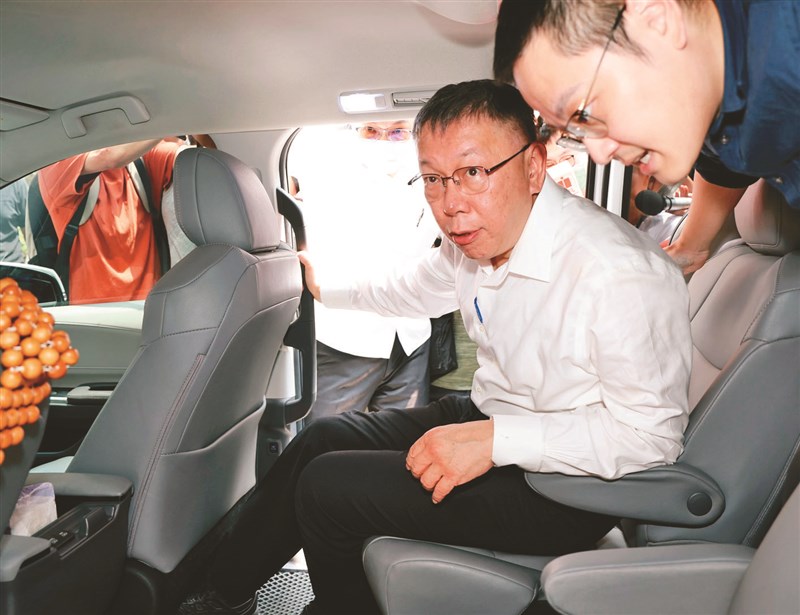 廉政署昨天兵分多路搜索柯文哲住家等地點,並約談柯文哲等人。圖為柯文哲(左)離開住處搭車前往廉政署。圖/中央社