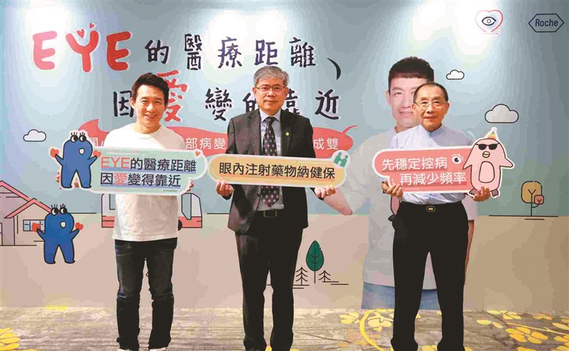 幫助偏鄉民眾照顧眼睛健康,中華民國愛盲協會攜手台灣羅氏,並邀請身兼黃斑部病變照護者的郭子乾(左)擔任衛教大使,齊聲喊出「Eye的醫療距離 因愛變得靠近」口號,於包含離島在內的全台偏鄉舉辦公益黃斑部病變篩檢活動,幫助黃斑部病變的患者早篩早治。