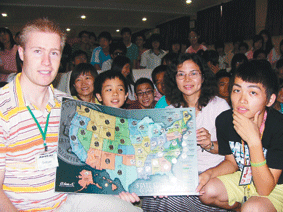 「太興奮了!」Samuel Tedder說,他接獲這一訊息,馬上想來台灣,當地平日參與教會活動的二十名青少年,大都是華裔子弟,聽到有機會到台灣教美語、服務,馬上討論、設計課程,全部自費來台教學,僅由教會提供住宿。