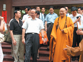 佛光山開山星雲大師於傳燈樓會見一行人,並表示,在台灣愛台灣,在大陸愛大陸,海峽兩岸像一家人,台灣有幾百萬的人民都有相同的想法、心情,尤其兩岸直航後,更增加相互往來的機會。大師說:「創造和諧社會,以及兩岸的和諧和平,是今後最重要目標;有往來,友誼就能進步,心意相同、精神一致。」