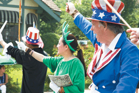 佛光人裝扮成山姆叔叔、自由女神及獨立宣言起草者,於隊伍前開道。人間社記者覺皇攝