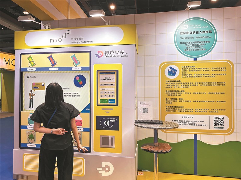 數發部昨舉行資訊月主題館開幕活動,首度在資訊月展示「數位皮夾」概念。向民眾介紹數位皮夾是一款收發重要文件的App,概念上就像實體皮夾可以容納各種身分證明文件,可存放健保卡、畢業證書等重要數位文件,並使用不被偽冒的簽章技術,確保資料安全性。但不會強制民眾使用、也不會發行任何身分證明文件。圖/中央社