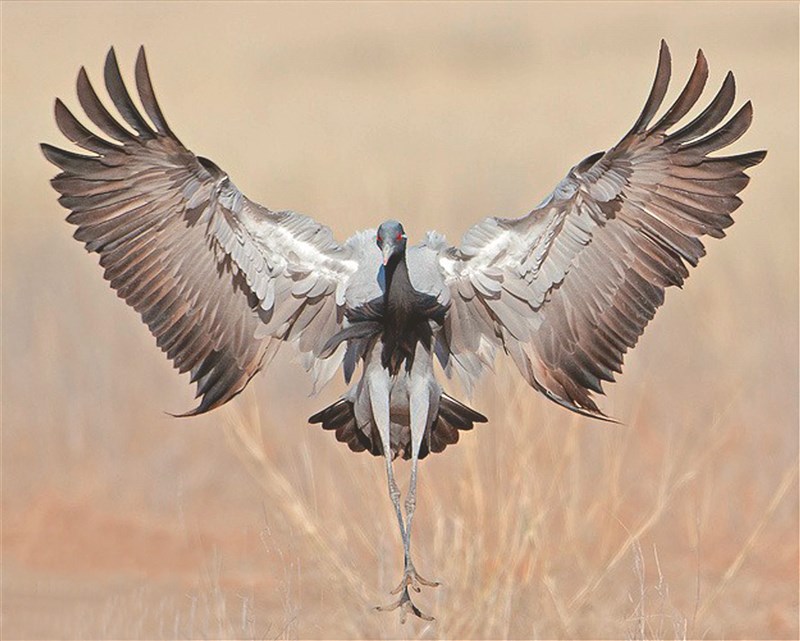 幸運攀越珠峰 人類應援蓑羽鶴 文/派翠西亞 |2024.12.22 語音朗讀 3216觀看次 字級 大 中 小 齊將小鎮的印度教信徒拋灑餵食蓑羽鶴。圖/陳維滄蓑羽鶴身姿優雅如少女起舞。 圖/百度蓑羽鶴走步時,步履輕盈柔美如華麗起舞的舞蹈家。圖/百度圖/百度喜馬拉雅山上的猛禽金鵰,伺機襲擊正在攀峰的蓑羽鶴。圖/123RF 文/派翠西亞 每年11月,蓑羽鶴集結在中蒙邊境的喜馬拉雅山下,接著循著神祕古老的遷徙路線,歷經冰雪風暴和成群金鵰擊殺的考驗,飛越8849公尺高的珠峰抵達印度,這時迎接牠們的,是一群善良護生的印度教信徒,以清水和豐盛的食物,撫慰這群體力耗盡的鳥類朋友…… 數量龐大的蓑羽鶴,於每年11月初,齊集中蒙邊界的喜馬拉雅山下,進行一年一度的大遷徙──從中蒙邊界往南遷徙,飛越海拔8849公尺的喜馬拉雅山最高峰「珠穆朗瑪峰」(珠峰),抵達印度的水澤度冬。在西藏與尼泊爾人眼中,橫亙亞洲2千多公里的喜馬拉雅山,是「鳥都無法飛過的聖山」,更何況是海拔將近9千公尺的珠峰,終年暴雪冰封、空氣稀薄,只有少數耐寒動物得以生存其間。體型袖珍勇氣比天高然而,許多年來,一種體型袖珍的蓑羽鶴,卻年年突破風雪冰暴與稀薄空氣的考驗,冒著被猛禽金鵰偷襲獵食的風險,僅靠小小的身軀和薄薄的羽毛,拼盡體力尋求一線生機,飛越高峰到印度溫暖的小鎮上過冬。科學家至今雖仍不能明暸:蓑羽鶴為何選擇每年燃燒生命飛越聖山?但透過生態攝影家的紀錄,不但揭開了蓑羽鶴原本神祕的古老遷徙路線,也讓人對這些勇於挑戰的動物勇士產生敬意。即便是成年蓑羽鶴,體長也僅有68~92公分,體重2~3公斤,被認為是世界上十多種鶴類中,體型最小的鶴種。在許多鶴種都列為瀕危物種的情況下,蓑羽鶴族群至今仍繁衍興盛,蹤跡也遍布歐亞大陸及非洲等地,全球總計超過23萬隻,僅在中國大陸被列為稀有的保護物種,生命力可說是十分強韌。優雅如舞蹈中的少女 蓑羽鶴又名「閨秀鶴」、「處子鶴」,原因是動物學家發現,這種鶴在走步時雖然極少跳躍,有一些動作卻彷彿像是少女走路、行禮和跳舞時的優雅身姿,也比其他鶴類更像個舞蹈家。近代的蓑羽鶴,大多生活在西伯利亞中部,分布範圍從黑海到蒙古和中國東北。土耳其也有少量的繁殖群體。北非地中海沿岸的族群則已滅絕。中國大陸則東北、內蒙一帶,直到鄂爾多斯高原,都可看到蓑羽鶴的蹤影,大多生活在高海拔5000公尺左右的地區。奮力一搏飛越最高峰蓑羽鶴是典型的候鳥。來自歐亞西部的鳥類會飛往非洲過冬;來自亞洲、蒙古和中國的蓑羽鶴,則會在印度次大陸的農田水澤過冬。至於中國大陸境內的遷徙路線,會從北往南,一路經過青海、西藏,最後飛過喜馬拉雅山,有些甚至會飛越最高處珠穆朗瑪峰。 喜馬拉雅山這座世界屋脊,對蓑羽鶴而言,是一道攸關性命的考驗,許多蓑羽鶴的第一次遷徙,極可能就是最後一次──在喜馬拉雅山上,住著非常兇猛強悍,能獵食成年野狼的金鵰。這些金鵰會躲在一旁,伺機在蓑羽鶴飛越山峰時,以超過時速200公里俯衝攻擊,捕食沒有防備能力的蓑羽鶴。 金鵰無情襲擊難躲避 當然,每次蓑羽鶴群的攀峰行動,總是幾千上萬隻集體行動,金鵰不可能全數獵殺,但一旦被金鵰發現蓑羽鶴高山缺氧或體力不濟,不論是當年出生的少年鶴或成年鶴,都有機率被金鵰擊殺。此外,天候的嚴苛情況,更是對蓑羽鶴無情的考驗。事實上,喜馬拉雅山上的氣溫極低,加上氣候非常惡劣,經常吹著風暴雪,即便裝備齊全的人類專業登山者,都不一定次次能全身而退,何況只有羽毛護身的蓑羽鶴。因此常見許多體弱又缺氧的鶴,經不起惡劣天候的考驗,飛到一半就脫力下墜,而這一次的下墜,也預告牠再沒有爬起來的機會,只能墜地成為雪山上動物的養分;少年蓑羽鶴被兩隻金鵰夾擊,只能消失在喜馬拉雅山麓的茫茫冰雪中……身負傳達神啟的任務至於其他鶴群,則持續悲壯的一次次向珠峰衝頂,惡劣的風雪,迫使牠們一次次後退、再集結成古印度陣法前進,成群的金鵰圍追堵截,蓑羽鶴即便遍體鱗傷、身心疲憊,依然一次次呼叫著、集結著沒有退卻……但由於「蓑羽鶴」這種鳥,在印度文化中具有重要象徵意義,被稱為Koonj或Kurjaa(源自梵語的「鶴」字),經常在文學、詩歌、習慣用語中,用於形容「擁有美麗脖頸的女人」、「冒險及勇敢歸來的人」,印度史詩中也多所歌頌蓑羽鶴的神聖美好,並認為這些史詩是神的啟示,而非人的創作。印度教徒豐食饗鶴群所以一旦蓑頸鶴衝破萬難,飛越喜馬拉雅山後,會群聚在印度塔爾沙漠中的齊將小鎮,由於小鎮中大部分是印度耆那教徒,不但不會傷害蓑羽鶴,反而敬若神明,在鶴群度冬的幾個月期間,準備充足的糧食,放在水澤邊或田埂上,讓鶴群能盡速恢復體力。事實上,齊將小鎮附近的印度居民,不僅把鶴當作神明象徵,也把狼當作崇拜對象,絕對不獵殺,甚至還犧牲自己的土地,捐獻給國家當作「印度獅復育區」,只在自己村落周圍用簡單的荊棘設下防護,看似極為古老的宗教,教義背後卻隱藏著現代人極度缺乏的環保意識。美麗優雅機警膽小蓑羽鶴多棲息於開闊的平原、草地、農田、沼澤、溼地、高原湖泊上,除繁殖期成對活動外,多數時間成小群或家族活動,極少單隻出現。性情膽小而機警,善於奔走,不僅避開人類也不與其他鶴類合群。胸黑、身白、嘴黃、眼紅的蓑羽鶴,頭頂珍珠灰色,