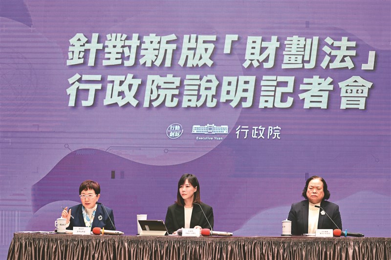 《財政收支劃分法》修正案20日在藍白立委聯手下三讀通過,針對新版財劃法,行政院昨舉行記者會,財政部長莊翠雲(左)、行政院主計總處主計長陳淑姿(右)出席說明。圖/邱德祥