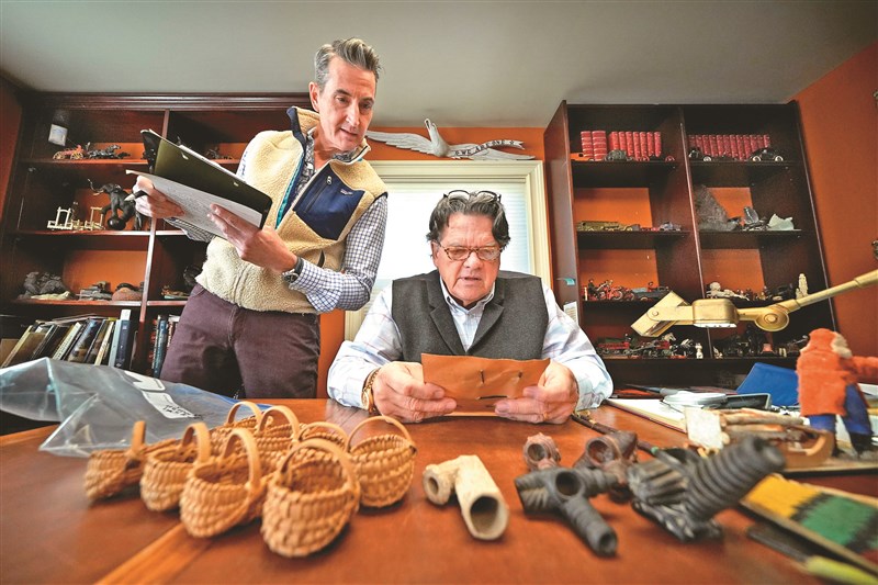 維勒(右)在美國緬因州,「托馬斯頓地方拍賣畫廊」裡檢閱文件。圖/美聯社