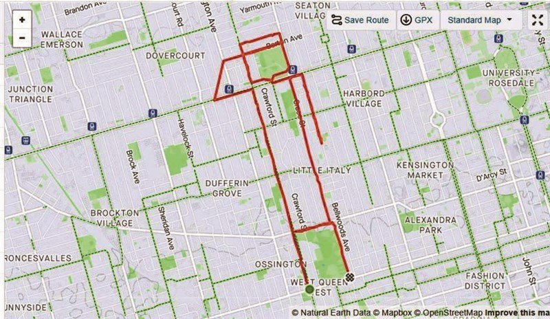 《華盛頓郵報》報導,住在多倫多的麥凱布結合120次的跑步軌跡,製作出這段戴著帽子的火柴人,隨著歌曲節奏在街道地圖上跳舞的動畫。