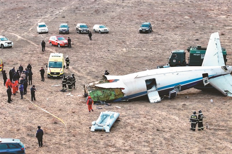 一架亞塞拜然航空客機25日在哈薩克西部城市阿克套附近墜毀。圖/美聯社