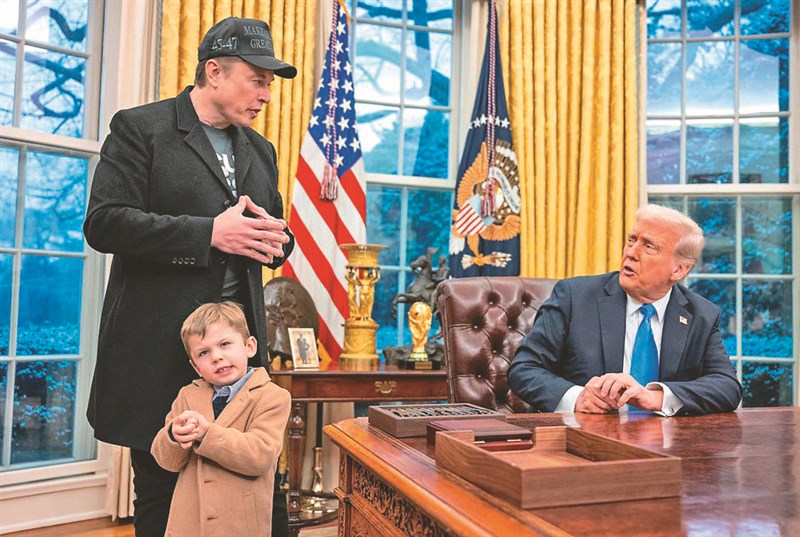 【本報綜合外電報導】美國總統川普與最具影響力的顧問、科技富豪馬斯克,11日在白宮橢圓形辦公室難得同框,川普簽署行政命令要求聯邦政府持續縮減人力。身為全球首富的馬斯克掌理政府效率部以來,首次接受媒體提問時說,民眾投票支持大幅改革政府,「這就是大家希望的,民主真義就是如此」,還稱聯邦政府若不削減開支,美國將破產。