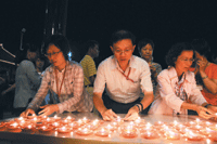 學員向佛陀獻上心燈,將參加課程的歡喜,回向十方。人間社記者莊美昭攝