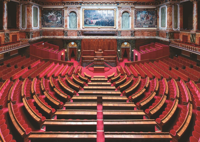 凡爾賽宮內的「國會兩院廳」建立於一八七五年,是一座可容納一千五百人的半圓形會議廳。圖/法國凡爾賽宮提供