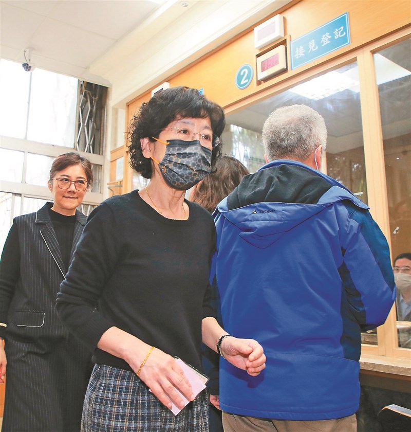 柯文哲夫人陳佩琪(中)、妹妹柯美蘭(左)昨到台北看守所辦理接見。圖/潘俊宏