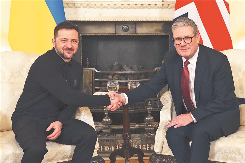 【本報綜合外電報導】美烏領袖2月28日在白宮不歡而散後,烏克蘭總統澤倫斯基當天即轉往歐洲的英國。英國首相施凱爾2日說,英烏與法國均已同意致力研擬一項烏俄戰爭的停戰計畫,再將該計畫提交美方討論。
