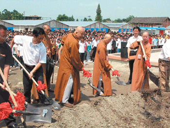 ▲星雲大師主持江油市彰明中學動土儀式。記者須冠達攝