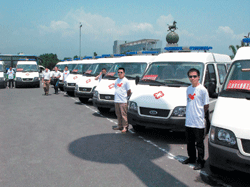 ▲佛光山、佛光會此行共捐出六十七輛救護車,光是重災區江油市就獲得三十輛。記者須冠達攝