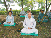 雖然艷陽高照,但在橄欖樹蔭下盤坐念佛,微風徐來,一波波的海潮音不斷,宛如置身極樂世界般的清涼地;繞佛時,雖然全身汗水淋漓,但在步步佛號聲中,而心「淨」自然涼;止靜打坐時,置心一處,觀照自己當下的心。