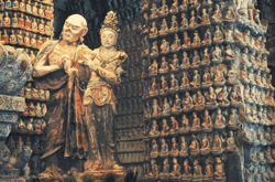 萬佛岩 三世佛 藝術寶庫 圖/本報香港傳真 |2008.07.24 語音朗讀 822觀看次 字級 大 中 小 歷經千餘年鑿建而成、位於中國陜西省子長縣鍾山南麓的鍾山石窟,始建年代最早始於東晉太和年(西元三六六年),共有十八個石窟,目前開掘的是石窟群中的五個,其中以中窟規模最大,因有大小佛像一萬餘尊,故稱「萬佛岩」。鍾山石窟被中外專家譽為「全世界罕見的石窟」、「中國第二個敦煌」,具有很高的歷史、藝術、科學價值。上圖左是石窟內的釋迦牟尼三世佛過去、現在、未來三世造像(左至右),均為就地雕鑿,與壇基渾然一體。右圖則是釋迦牟尼佛未來世的左脅侍菩薩(前右)和大弟子迦葉(前左)造像。 前一篇文章 漳州媽來台三年 基隆各界獻祭 下一篇文章 下月宜蘭體驗搶孤 熱門新聞 01與精品品牌撞鞋 印度涼鞋打專利戰2025.12.2102佛光山高雄佛教堂 營建工地評鑑特優2025.12.1903銀杏點亮.東京印象2025.12.2304太陽瓶燈泡 點亮貧困家庭希望 2025.12.1905邂逅佛教 安頓身心2025.12.2106【動物奧斯卡獎】猜猜誰最會演(上)2025.12.2107【時光重逢】花宅海邊美術館2025.12.1908北島佛光山獲四星肯定 園林躍升具重要意義庭園2025.12.1909日球星率道奇連霸 2025體壇最驚奇 2025.12.1910社論--瞋恨的危害2025.12.21 訂閱電子報 台北市 天氣預報 台灣一週天氣預報 相關報導 大悲懺法會南華登場 見證百萬人興學成就教育願心媽祖祈福文化節今擲筊求好日 將於9/27熱鬧登場白沙屯媽祖進香3/18出發 今晚放頭旗昭告四方 全台唯一水上遶境 復興宮媽祖石門水庫祈福 土地公迎頭牙誕辰 各地湧入大批信眾祝壽 鹽水武廟文昌祭傳承古風 道長為學子點竅門