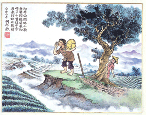至今茶山在採茶時節,依然山歌嘹亮,希望這個民俗永遠都不失傳。劉興欽特地為這幅山歌圖寫了一首打油詩:
