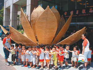 林煥騰說,主燈是以稻草編製成的十八瓣蓮花座,直徑八公尺,高三點三公尺,連骨架重五百公斤,將於本月二十七日日或二十八日安置在河濱公園,搭配投射燈,成為水燈節首景。