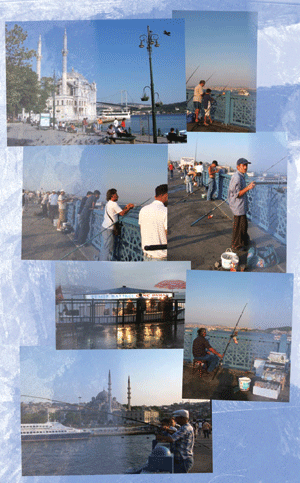 在這裡,拿釣竿的人可是比過橋的人要多上許多倍。他們倚在欄杆上,揉著肩膀,不管日夜都在釣魚。如果因好奇心驅使而在那裡探頭探腦,一定會有一兩個好心的土耳其阿伯跟你搭訕。