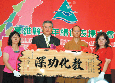 高雄縣政府為獎勵九十六年度興辦公益慈善暨社會教化事業績優宗教團體,二十五日舉行表揚大會,佛光山寺、光德寺等十二個寺廟獲頒「教化功深」匾額乙面,阿蓮鄉薦善堂、超峰寺等則分別獲贈獎牌及獎狀。會中同時表揚九十七年度特優村里鄰長及績優民政人員八十九人、績優公所十五所及績優調解委員四十五人。