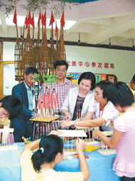她表示,今年的搶孤與往年很不同,不但配合蘭雨節,重點是要把這項珍貴的文化傳承下去,所以中元祭典協會首度與救國團開辦研習,讓一般人認為神聖不可侵犯的搶孤民俗器物,可以開放給下一代體驗模型製作。(戴永華攝)