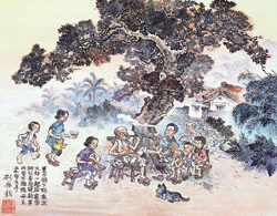 樹下相聚乘涼話家常,是一天中最快樂的時光。大家天南地北的聊著,一邊用蒲扇搧涼兼趕蚊子。