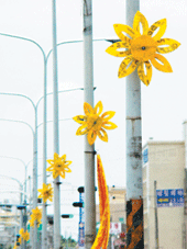 市容殺手化身街頭風車 圖與文/劉明岩 |2008.08.01 語音朗讀 1024觀看次 字級 大 中 小 街頭上充斥著各種廣告看板,嚴重影響市容景觀,但彰化市莿桐里長吳朝卿與當地社區發展協會總幹事王永田,發揮巧思,動用環保義工隊將拆除的看板製作成風車,掛在分隔島的電線桿上。現在走在彰水路上,成排風車隨風轉動,美不勝收,昔日市容殺手變成美麗的景觀。圖與文/劉明岩 前一篇文章 《地方采風》 下一篇文章 汽機車肅竊專案 也抓自行車 熱門新聞 01【悅讀人生】不被打趴是王道2025.10.0302佛光寶寶祝福禮 金光明寺信仰傳承2025.10.0203葡國跨宗教對話 佛光人宣揚人間佛教2025.10.0204網購家具內藏奶貓 暖心收編2025.10.0205星雲大師全集【講演集】禪學與淨土─禪師與禪詩 6-32025.10.0206香水販賣機東京現身 噴1次20元2025.10.0207威尼斯之獅 疑馬可波羅父經絲路帶回2025.10.0208相撲女力士站上土俵 打破千年傳統2025.10.0209蘿蔔乾2025.10.0210北市12區社福中心 台北道場贈物資 2025.10.03 訂閱電子報 台北市 天氣預報 台灣一週天氣預報 相關報導 連40天超種亮紅燈 高麗菜價恐跌光復國中棒球場重創 將移訓鷹揚禮納部落光復鄉重災區4校 今全面復課中秋明月高掛花蓮馬太鞍堤防 後年建超級大堤
