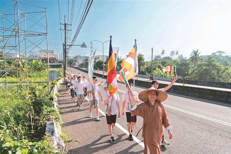 慧專法師(前)帶著佛光人以腳步行佛,以願心傳燈,讓星雲大師的慈悲智慧繼續在人間閃耀。圖/佛光山旗山禪淨中心提供