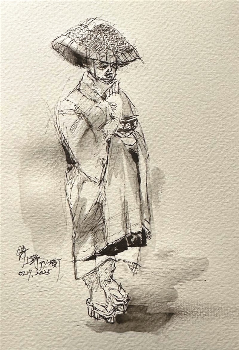 我也在有如雪地的素描本上用枯枝一般的墨水筆,一筆一畫抄經似的對著這個精神細細觀察用心體會,並一筆筆的記錄在心上。這時,市聲裡的人車好像默片裡的人和物逐一漸漸淡出,眼前繽紛的人和物彷彿將明度彩度都抽離,只留一片清明。