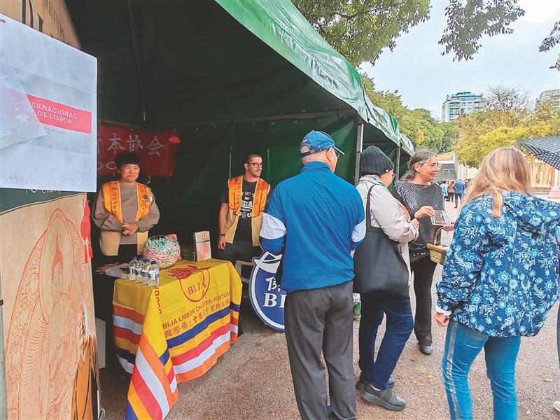 【人間社記者緣道里斯本報導】葡萄牙宗教間對話工作小組(GT DIR)九月二十七、二十八日在里斯本市Alameda廣場,舉辦成立十周年慶典,國際佛光會葡萄牙里斯本協會應邀參與,展示佛光山開山祖師星雲大師著作與智慧法語籤,並提供葡文介紹手冊,向大眾弘揚人間佛教理念,展現佛光山「以文化弘揚佛法」的宗旨。