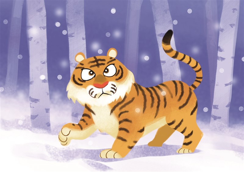 大家想像一下,如果把你家的貓咪放大好幾倍,再幫牠塗上橙色和黑色的條紋,那差不多是老虎的樣子啦!老虎是世界上最大的貓科動物,成年老虎從鼻尖到尾巴可以長到三公尺左右,站起來可能比籃球架還高呢!