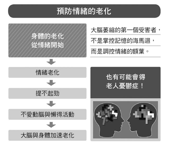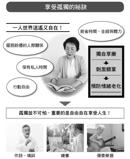 老後健康、快樂之道:培養興趣&調整心態 文/和田秀樹(日本精神科醫師) |2025.10.04 語音朗讀 262觀看次 字級 大 中 小 圖/大是文化提供圖/大是文化提供圖/大是文化提供想要激活額葉,避免情緒老化,就是做有趣的事。圖/123RF 文/和田秀樹(日本精神科醫師)學會獨處與享受孤獨是人生的課題。當務之急就是為老後的人生培養自己的興趣。同時,不必期待對方百分百完美,能接受做好6成就夠了的心態,反而更有利於感情健康。我們總以為獨樂樂不如眾樂樂,特別是夫妻就應該同進同出,其實不然。因為真正懂得獨處的人,自由支配的時間較多,人生也更加充實。這也是若即若離相處模式的真正意涵。除了個人行動的自由以外,獨處還有一個好處。研究指出:人類大腦中最早開始老化的,是額葉。一般大眾普遍認為大腦衰退是從負責記憶的海馬迴開始,但事實並非如此。額葉是大腦中最為發達的區域,掌管情緒、思考等高階認知功能。當額葉開始老化,也意味著情緒功能的退化,進而導致意願降低、不想動腦、不想活動,結果身心功能逐漸退步。對生活提不起勁嗎?以下是一個簡單的心理測試,能評估你的意願程度。如果一項都沒有,請務必多留意!□最近有買報紙、雜誌或書籍。□曾經想去旅行或外出用餐。□想主動與朋友、熟人見面。□想重拾過去的興趣。情緒老化的三大主因如下,雖然都是隨年齡無法避免的生理現象,但仍可透過個人意識來控制與改善:‧大腦額葉的萎縮。‧動脈硬化。‧幸福荷爾蒙血清素的減少。晒太陽增血清素額葉只要參與「有趣的、想做的事」,就能被活化;而血清素的減少,也可以透過每天晒太陽來改善。學會獨處與享受孤獨是人生的課題。因為到頭來總有誰先走一步,只要提前做好心理準備,到了那一天,也比較能保持平靜,讓日子照常過下去。因此,當務之急就是為老後的人生培養自己的興趣。壓力和憂鬱原因夫妻之間如果能夠彼此完全理解,當然是最好不過的事。然而,即使是夫妻,歸根究柢仍是沒有血緣關係的陌生人,期待百分之百的心意相通,實在有些強人所難。因此,夫妻相處的關鍵,在於相互體諒與避免吹毛求疵。懂得一笑置之,才是維繫家庭和諧的不二心法。每個人的想法各有不同,美國精神科醫師、賓州大學醫學院精神病學名譽教授、被譽為「認知療法之父」的阿倫‧T‧貝克(Aaron T. Beck)及其團隊所提出的「12種認知扭曲」(cognitive distortion)理論,揭示了壓力與憂鬱症的成因。退一步海闊天空由於女性普遍較為嚴謹認真,不習慣大而化之,因此認知扭曲的傾向較男性更為明顯,也更容易受憂鬱症所苦。12種認知扭曲中,尤其要注意的是「二分法思考」(即非黑即白、非全有即全無的極端思考模式)。這種思考模式在年長者中特別常見,因為無法接受灰色地帶,容易累積壓力,也較容易導致憂鬱症的發作。認真且對自己要求嚴格的人,常給自己施加壓力,認為自己必須做到最好,甚至也會用同樣的標準要求另一半。當事情不如理想時,就會自責:「我真是個失敗的人」,或陷入自視甚高,表現出傲慢。這樣的生活方式,即便沒得憂鬱症,也會讓自己的人生過得很辛苦。俗話說的好,退一步海闊天空。更何況人非聖賢,對自己和他人要求完美,只是跟生活過不去。因此,不必期待對方百分百完美,能接受做好6成就夠了的心態,反而更有利於感情健康。同時,也別忘了對自己寬容,別總是逼自己完美。適度的後悔與自責,反而能讓人更溫柔的對待另一半。夫妻如果能有這樣共同的想法,感情自然會更穩固。(摘自《明明沒病,一看到老公就不舒服》,大是文化出版) 前一篇文章 【中醫專欄】秋季養生之道 下一篇文章 【營養專欄】破解飲食4迷思,別被誤導啦! 熱門新聞 01【遊藝筆記】中秋隨談 千里共嬋娟2025.09.3002新馬寺校園佛學會考 6校逾4千學生參與2025.09.2903種樹護地球 維也納佛光人路跑2025.09.3004宏法社贈星雲大師全集 頭份國中弘傳三好2025.09.3005塭仔圳重劃區 開發進度受矚目2025.09.3006佛大義煮團 熱食暖心馳援光復2025.10.0107【世界行旅】煙火˙人間 2025.10.0108水災後無形殺手 類鼻疽2025.09.2909莊佳穎採紅菱 獲《國家地理》雜誌台灣攝影佳作2025.09.2910【考考你的智力】2025.09.29 訂閱電子報 台北市 天氣預報 台灣一週天氣預報 相關報導 【營養專欄】破解飲食4迷思,別被誤導啦!【中醫專欄】秋季養生之道夠好父母展韌性 青春兒女不卡關聊聊心裡事 你不必總是為別人而活! 與自己相遇的三個練習一分鐘降血壓操, 比走路、減鹽還有效!【養眼專欄】病毒性結膜炎會傳染, 注意清潔問題
