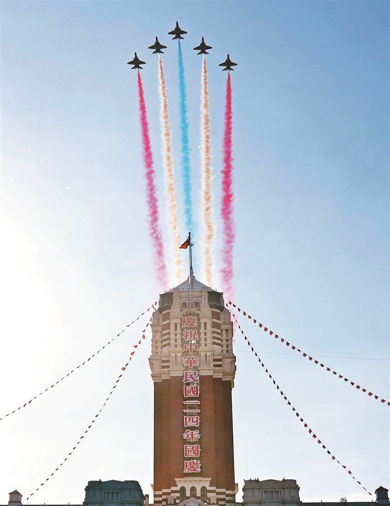 國慶預演 雷虎小組噴彩煙 |2025.10.07 語音朗讀 49觀看次 字級 大 中 小 國慶籌委會昨在總統府前舉辦國慶大會預演,最後壓軸是由空軍雷虎小組駕駛「勇鷹」高教機五機編隊施放彩煙,飛越總統府觀禮台上空,慶賀中華民國114歲生日快樂。圖/潘俊宏 國慶籌委會昨在總統府前舉辦國慶大會預演,最後壓軸是由空軍雷虎小組駕駛「勇鷹」高教機五機編隊施放彩煙,飛越總統府觀禮台上空,慶賀中華民國114歲生日快樂。圖/潘俊宏 前一篇文章 新聞千里眼 下一篇文章 總預算復議 藍視卓揆態度決定 熱門新聞 01佛大義煮團 熱食暖心馳援光復2025.10.0102【世界行旅】煙火˙人間 2025.10.0103壓力會破壞大腦防線2025.10.0104大腦基本運算單元2025.10.0105台灣好行 套票送好禮2025.10.0106旗山感念師恩茶話會 以法傳心2025.10.0107鼓勵年長女性 66歲嬤選環球小姐2025.10.0108全球AI算力 美奪冠、陸第22025.10.0109【詩】徒手抓一把蟬聲 2025.10.0110煮8.78公噸西非國飯 奈國名廚破紀錄2025.10.01 訂閱電子報 台北市 天氣預報 台灣一週天氣預報 相關報導 藍黨魁選舉電視政見會 鄭麗文:2026藍白合 該讓就讓海洋產業專區 培訓逾4千人才美駐陸大使:一中政策不變藍黨魁辯論 兩岸路線聚焦鄭麗君:台美晶片不會五五分卓揆提3重建 邀韓合建社會信任