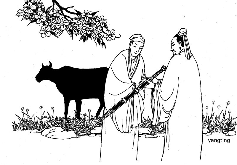 「賣劍買牛」這句成語出自於《漢書‧龔遂傳》。龔遂上任渤海太守時,當地民風剽悍,盜賊橫行,百姓習慣攜帶刀劍出門,卻疏於耕作。戰亂中,兵器是求生的依靠;但在太平時,卻滋生暴戾。龔遂深知,光靠嚴刑峻法是無法改變社會風氣的,因此他推行教化,開倉賑濟貧民,勸課桑農,下令:「民有帶持刀劍者,使賣劍買牛,賣刀買犢。」他幽默地說:「何為帶牛佩犢!」百姓將刀劍換成牛,田間漸聞耕聲,社會遂趨安定祥和。