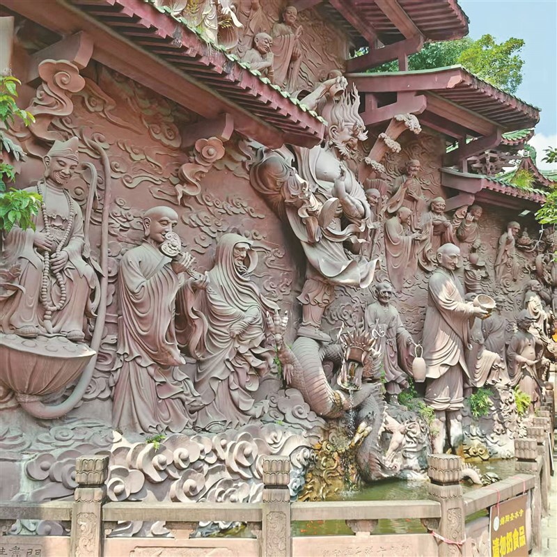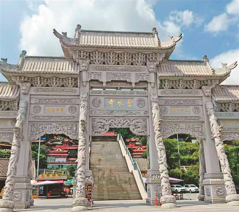 【佛門攬勝】中川第一禪林:四川綿陽聖水寺 文/郭詠澧 |2025.10.08 語音朗讀 38觀看次 字級 大 中 小 大雄寶殿供奉釋迦牟尼金身。圖/郭詠澧聖水寺宏偉山門。圖/郭詠澧吉祥門五百羅漢泥塑長廊。圖/郭詠澧 文/郭詠澧有「中川第一禪林」美譽的聖水寺,坐落在四川綿陽城西、涪江右岸的塔子山南麓,是川北蜀道上歷史悠久的古剎。因山上有泉水湧出,自古以「龍泉聖水」聞名,民間流傳「聖水落千庄」、「飲之去病免災」。該寺始建於唐代永徽年間(六五○~六五五),初名「甘泉寺」,明代正統元年(一四三六)更名「聖水寺」。因年久失修,一九八九年經果忍法師主持復建,歷時二十餘年恢復主體建築,成為朝聖拜佛、賞景遊憩的大型寺廟,也是川北佛教文化地標。 聖水寺占地一百四十餘畝,地勢開闊,規模宏偉且布局嚴謹,建築群採唐風與明清形制,融合江南園林雅緻意境,形成三軸九院格局,頗具大叢林氣象。沿中軸線自下而上依次建有山門、天王殿、觀音殿、大悲殿、韋陀殿、大雄寶殿和藏經樓等氣勢恢宏的殿堂,兩側則分布著玉佛殿、地藏殿、伽藍殿、禪堂、鐘鼓樓,以及亭、閣、樓、廊建築,不僅展現古寺風範,亦為園林風格與佛教藝術之融合典範。天王殿面闊五間,供奉彌勒佛與韋陀菩薩,兩側四大天王以香樟木雕刻而成,殿前盤龍石柱奪目吸睛。大雄寶殿的朱檐金瓦斗拱有明代遺風,七開間重檐歇山頂,殿高十六公尺,供奉釋迦牟尼金身,兩側十八羅漢姿態各異;另有三十二品《金剛經》碑刻立於兩廂,字跡遒勁如刀刻斧鑿,殿前鐵鑄鐘重達三噸,鐘聲悠遠。觀音殿供奉毘盧觀音像,手持淨瓶與楊柳枝,基座暗藏排水系統,暴雨時水自蓮花瓣間湧出,形成「觀音灑露」奇觀。大悲殿供奉四面千手觀音,為榫卯結構楠木雕塑,四面神態各異,慈悲莊嚴,四十二臂手持法器,手掌內置銅鈴,風過時梵音陣陣。玉佛殿則是供奉緬甸華僑捐贈的三尊緬玉佛像,其中釋迦牟尼佛高二‧七公尺,通體潔白瑩潤,佛首鑲嵌夜明珠,甚為珍貴。聖水寺尤以吉祥門雕塑長廊著稱,總長兩百公尺,以傳統泥塑工藝雕刻五百羅漢塑像與飛天手舞足蹈情景,人物姿態鮮活生動,衣紋皺褶細膩自然,被譽為「東方佛國浮雕史詩」。鐘鼓樓採用鋼結構與仿古飛檐結合,直徑一‧五公尺銅鐘刻有《心經》全文,每日晨鐘暮鼓與涪江濤聲共鳴。寺後方有七座摩崖造像龕窟,題記顯示鑿於唐代永徽元年(六五○)。龕窟中有罕見的「佛道合龕」摩崖造像,道教天尊老君、真人和佛教阿彌陀佛、菩薩並列於龕內。此種佛道融合文化,反映了唐代中後期佛道教交融的歷史背景,為研究唐代宗教演變提供實證,深具歷史意義。第七龕窟水月觀音保存完整,面部圓潤、眉眼低垂,嘴角微含笑意;頭戴三葉寶冠嵌圓形寶珠,S形冠繒帶呈波浪形飄動感,右腿自然下垂,左腿屈膝盤坐,姿態閒適,具中唐風格。造像題記為唐代中和五年(八八五),是現存最早有明確紀年的水月觀音像。寺後方有泉水自石隙湧出,泉眼終年不涸,相傳為唐代高僧求雨所得;另有一古井「聖水泉」,井水清冽甘甜,相傳為「龍淵」遺跡。唐代開鑿的〈聖水龍湫記〉摩崖石刻,現雖殘損,但印證了千年祈雨文化。聖水寺自唐代甘泉到今日禪林,古韻與傳奇交織,以千年積澱守護禪宗法脈,遊客既能感觸歷史厚度,亦可欣賞佛藝殿堂。 前一篇文章 【長期徵文】 下一篇文章 【歷史評析】隨喜管仲,歡喜鮑叔牙(下) 熱門新聞 01【悅讀人生】不被打趴是王道2025.10.0302佛光寶寶祝福禮 金光明寺信仰傳承2025.10.0203葡國跨宗教對話 佛光人宣揚人間佛教2025.10.0204網購家具內藏奶貓 暖心收編2025.10.0205星雲大師全集【講演集】禪學與淨土─禪師與禪詩 6-32025.10.0206香水販賣機東京現身 噴1次20元2025.10.0207威尼斯之獅 疑馬可波羅父經絲路帶回2025.10.0208相撲女力士站上土俵 打破千年傳統2025.10.0209蘿蔔乾2025.10.0210北市12區社福中心 台北道場贈物資 2025.10.03 訂閱電子報 台北市 天氣預報 台灣一週天氣預報 相關報導 【翰墨天地】菩薩就在你身邊【書藝心語】 山不轉路轉【民俗資產】 新豐池和宮:紅毛港邊的瑰寶【大江南北】蘇州蠡墅老街 【匠心傳承──內蒙古非物質文化遺產特展】內蒙古非遺【課本沒有的歷史】 紫石英號事件 國共內戰有英國海軍鬧場? 作者其他文章【佛門攬勝】鬧市裡的禪意祕境──鄭州大觀音寺奇妙有趣 無花果二進制到三進制【穿越古今】跨度十萬年的 廣都博物館iPS細胞 創造人工心臟暗物質物理屬性