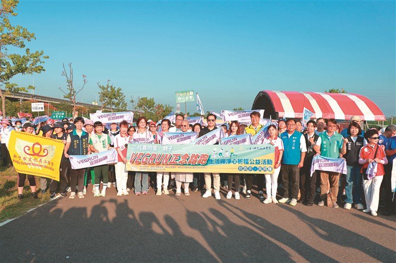 【人間社記者簡麗珠、郭芊筑新竹報導】佛光山法寶寺與新竹市政府4日在新竹市左岸C壘球場,舉辦「三代喜同堂.親子VEGRUN正念路跑」公益活動。透過「你跑步我捐糧」方式,推廣蔬食環保、健康與正念生活,吸引近2000位民眾、機關團體及佛光人共襄盛舉。
