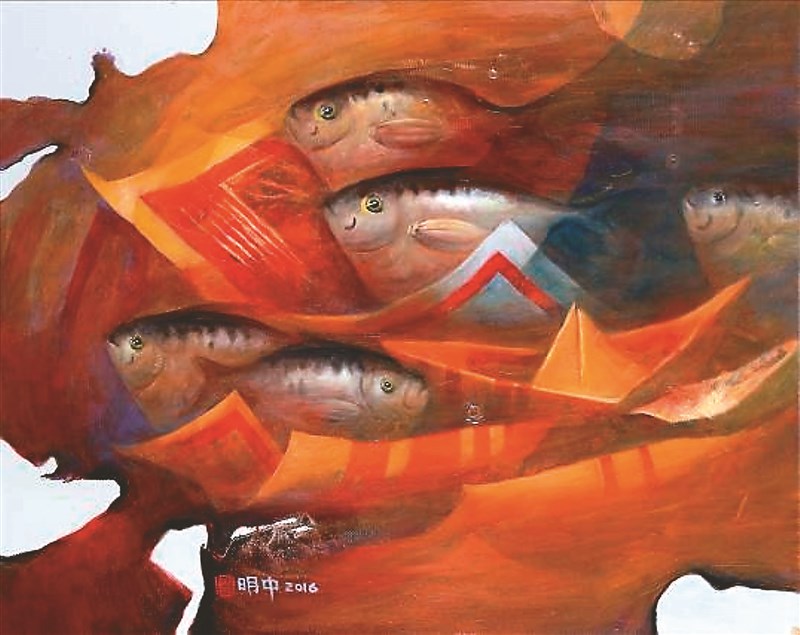 《有魚》系列:以魚為自我象徵和比擬,映射台灣在地符號與生命狀態,透過畫面的重組與分解,營造非線性、游移的時空感。