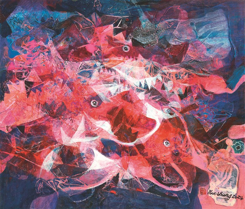 《心海凝視》系列:則是藝術家在經歷視網膜手術後,轉化模糊視覺為奔放的創作語言,在清晰與混沌之間捕捉感知的深度,也形成關照萬象的特殊視角。