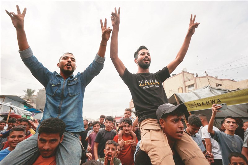 以哈達成停火協議 人質將獲釋 本報綜合外電報導 |2025.10.10 語音朗讀 72觀看次 字級 大 中 小 美國總統川普(右)8日出席在白宮舉行的圓桌會議時,聽取國務卿盧比歐匯報以哈最新進度。 圖/美聯社以色列和哈瑪斯就加薩第1階段和平計畫達成協議。圖為9日加薩南部城市汗尤尼斯的巴勒斯坦人,聽聞和平計畫有進展後,手舞足蹈。圖/法新社以色列人質的親屬和在背後為他們提供支援的人士,9日獲悉哈瑪斯同意加薩第1階段和平計畫後,相擁而泣。圖/美聯社 【本報綜合外電報導】在2025年諾貝爾和平獎得主將於10日揭曉前夕,美國總統川普8日宣布,以色列和巴勒斯坦武裝組織哈瑪斯(Hamas)達成停火協議,哈瑪斯將釋放所有人質,以色列將撤軍至雙方界定的界線,他可能會在12日造訪中東。這起協議為終結兩年來的加薩走廊衝突鋪路,若能延續,將代表川普的重大外交勝利。這是哈瑪斯2023年10月7日突襲以色列、以色列反擊並宣戰,使加薩烽火持續兩年多以來的重大突破,哈瑪斯當時扣押250多名人質。川普中東行 不排除訪加薩 川普透過社群平台「真實社群」(Truth Social)發文寫道,以哈停火第一階段「是邁向強大、持久與永久和平的第一步,各方都會獲得公平對待!」川普表示,「這是阿拉伯和穆斯林世界、以色列及其周邊國家及美國的偉大日子,我們感謝卡達、埃及和土耳其調解員,他們與我們合作,促成這段歷史性的空前盛事,祝福和平締造者!」川普發文後,以色列總理納坦雅胡隨即發出聲明,「在上帝幫助下,我們將把人質全部帶回家。」哈瑪斯據信另扣押28名人質的屍體。川普也預告,他有可能在本周結束以前前往中東,可能是周六(11日)晚間或周日(12日),目的地是埃及,但川普說,他也不排除訪問加薩。這戲劇性變化發生在川普8日主持一項反法西斯的會議,突然被國務卿魯比歐趨上前打斷,魯比歐遞給川普一張字條,並向川普說悄悄話,報告最新進度。川普隨後看著字條表示,中東和平已非常接近;他並宣布將訪問中東的計畫,稍後貼文表示,以哈雙方已簽署達成第一階段停火協議。川普日前提出20點結束加薩衝突的和平計畫,要求哈瑪斯釋放所有人質,並同意所有繳械並同意和平共存的哈瑪斯成員獲赦免,且得以獲安全管道離境加薩。法新社報導,以色列和哈瑪斯談判代表,正根據川普提出的20點計畫,在埃及度假勝地夏姆錫克鎮(Sharm El-Sheikh)舉行間接談判;據路透報導指出,哈瑪斯8日已提交人質與巴勒斯坦囚犯名單,準備進行交換,並對結束加薩戰爭的談判表達樂觀態度。人質親屬 流下喜悅淚水《紐約時報》8日引述3位知悉調解者想法的匿名人士報導,部分談判,讓加薩終戰的阿拉伯調解者認為,能夠說服巴勒斯坦武裝團體哈瑪斯解除部分武裝,而這一步長久以來,是哈瑪斯畫下的紅線。對哈瑪斯是否將對交出任何武器持開放態度的詳細提問,總部在卡達的哈瑪斯媒體辦公室主任黎希,不願置評。當和平協議的消息傳到飽受摧殘的加薩與以色列時,人們流下了喜悅與難以置信的淚水,而以色列的親屬則焦急地等待著自兩年前戰爭爆發以來被扣押的人質獲釋。流離失所的巴勒斯坦人艾哈邁德.謝海伯 (Ahmed Sheheiber)在得知這項協議後,在加薩的避難所通過電話哭著說:「這是一個重要的日子,一個巨大的喜悅!」加薩地帶汗尤尼斯市居民艾曼.薩貝爾說:「我不敢相信這個消息!」而在阿爾馬瓦西沿海地區,人們聚集在一起齊聲高呼「Allahu Akbar」,意思為真主至大。 前一篇文章 諾貝爾化學獎 美日澳3學者研發「金屬有機框架」 下一篇文章 諾貝爾文學獎 匈牙利卡勒斯納霍凱摘桂冠 熱門新聞 01快遞4千件新衣 台北佛光人送愛到花蓮2025.10.0402逾850校學生 每天閱讀《人間福報》2025.10.0403星雲大師全集⑲【佛教管理學②】叢林的管理法③2025.10.0404印度生命線快車 治療百萬人2025.10.0405日自民黨選黨魁 麻生握關鍵票數2025.10.0406馬太鞍溪再遇豪雨 恐又成堰塞湖2025.10.0407以軍攔截援助加薩船隊 全球抗議2025.10.0408【印象旅人】盧比安納可愛的水龍頭2025.10.0409【海闊天空】繞一圈瀨戶內 品賞關西文史2025.10.0410美駐陸大使:一中政策不變2025.10.04 訂閱電子報 台北市 天氣預報 台灣一週天氣預報 相關報導 諾貝爾文學獎 匈牙利卡勒斯納霍凱摘桂冠 諾貝爾化學獎 美日澳3學者研發「金屬有機框架」綠能首超燃煤 能源轉型新里程 輝達北士科總部卡關 北市府提T12盼解套病童披英雄裝 就醫恐懼退散諾貝爾醫學獎 美日3學者揭免疫調節機制 作者其他文章不甩逼退聲浪 馬克宏將任命新總理 諾貝爾文學獎 匈牙利卡勒斯納霍凱摘桂冠習川熱線 傳聚焦台灣軍援軍售、TikTok議題 開挖土機遊大陸 填坑修路做好事從受助到助人 小學善念循環改變150年設計 MLB魚雷棒紅不讓