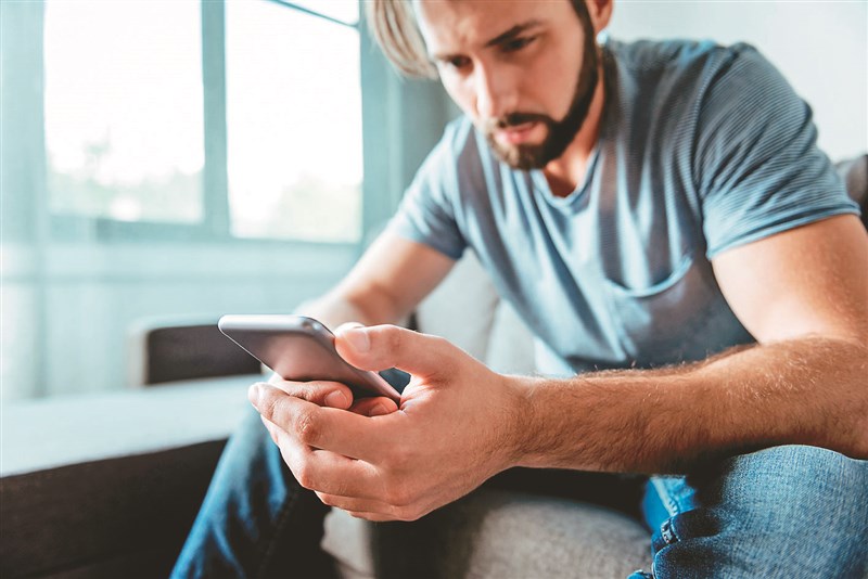 手機成癮,是男人處理痛苦的方式之一。(示意圖)圖/123RF