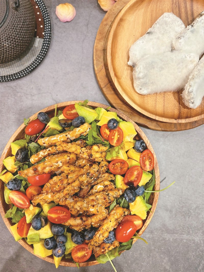 【健康新主張】天貝新風味 高蛋白蔬食大進化 文/傳潔 |2025.10.11 語音朗讀 72觀看次 字級 大 中 小 黃豆藜麥天貝佐酪梨沙拉 圖/星嫵蔬黃豆藜麥天貝佐酪梨沙拉 圖/星嫵蔬鷹嘴豆天貝四神湯 圖/星嫵蔬蔬燒天貝孢子甘藍 圖/星嫵蔬 文/傳潔源自一份深藏心底的願望——完成父親未竟的夢想。星嫵蔬創意料理創辦人盧采嫻把這份思念,用餐桌上的滋味來延續父親的遺願。以蔬食為核心,不僅是推廣健康與環保,更希望透過料理傳遞善念。盧采嫻多年來專注研發天貝,就是希望讓更多人知道蔬食也能有豐富的層次與營養。天貝擁有豐富的營養成分,富含蛋白質、益生菌、維生素 B 群、鐵、鈣、鎂、鋅、優質脂肪、以及膳食纖維,是素食者理想的蛋白質來源,有助維持腸道菌相平衡,促進消化,並能增加飽足感、穩定血糖,其低升糖指數(GI),更適合糖尿病患者或需要控制血糖的人群。天貝的作法簡單,用黃豆200克泡水8小時,煮20分鐘,去豆膜,炒乾豆子水分,再用風扇吹涼後放菌粉,置入模型,等待30-40個小時即成。以下介紹幾種簡單美味的天貝料理。黃豆藜麥天貝佐酪梨沙拉 食 材 酪梨半個、黃豆藜麥天貝100克、義式香料、橄欖油、巴薩米克醋 作 法 黃豆藜麥天貝切片抹油,撒上義式香料粉,進烤箱170度烤8分鐘。酪梨切片淋上橄欖油、巴薩米克醋,一層天貝一層酪梨一起享用。黑豆天貝刈包(4人份) 食 材 刈包4個、黑豆鷹嘴豆天貝100克、酸菜200克、花生粉50克 作 法 酸菜切碎炒香備用,天貝切大塊煎至金黃,加入五香粉、醬油、水,紅燒入味,蒸好的刈包,夾上天貝、酸菜,撒上花生粉即成。蔬燒天貝孢子甘藍 食 材 天貝100克、孢子甘藍6朵、青江菜70克、素蠔皇醬一大匙 作 法 天貝煎至金黃取出,再煎孢子甘藍上色,加入青江菜翻炒,再倒回天貝,以素蠔皇醬拌炒入味起鍋。素蠔皇醬配方素蠔油200克、水1500克、二砂50克、芹菜末25克、香油2瓶蓋,以上煮開,加太白粉水勾薄芡,起鍋前加黑胡椒碎粒20克增香。鷹嘴豆天貝四神湯(4-5人份) 食 材 四神湯材料包一包、水1000克、鷹嘴豆天貝200克、鴻禧菇100克、鹽、白胡椒 作 法 四神湯料加入1000克的水熬煮40分鐘,鴻禧菇略煸後一起熬煮,再將煎好的鷹嘴豆天貝加入,繼續煮10分鐘左右,撒上鹽及白胡椒調味。 前一篇文章 【植然味道】萬物皆可入蒸 瀏陽的飲食智慧 下一篇文章 熱門新聞 01陸建匈塞鐵路 塞國段全線通車2025.10.0502全球佛光人 雲端共識和諧和平2025.10.0503埃及熱氣球映門農巨像2025.10.0504以愛育才 20教師獲頒星雲教育獎2025.10.0505菲律賓宿霧強震 佛光人馳援賑災2025.10.0606高市早苗 電視台主播邁向首相寶座2025.10.0507虎頭埤風景區 推動纜車BOT案2025.10.0508心保和尚闡述《八大人覺經》修行是生命最好的投資 2025.10.0509【修行在人間】佛心的慈視52025.10.0510【人間行者心】感恩茶會 一場殊勝的相遇2025.10.05 訂閱電子報 台北市 天氣預報 台灣一週天氣預報 相關報導 【植然味道】萬物皆可入蒸 瀏陽的飲食智慧【樂活輕食】愛心燕麥粥【節氣養生】清秋滋養 松子綠豆糕【庶民料理】 懷念的古早味 南瓜米粉【養生百味】 秋寒漸起 動之有法【蘭音齋】 南瓜子桃酥 輕鬆手作的鹹甜驚喜 作者其他文章【植然味道】萬物皆可入蒸 瀏陽的飲食智慧