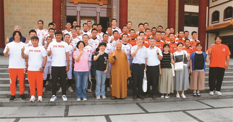 佛光山普門中學棒球隊獲立德盃全國青棒錦標賽冠軍、富邦盃高雄市代表權,慧傳法師(前排左六)及師長率隊,將榮耀獻給佛光山開山祖師星雲大師。圖/人間社記者李生鳳